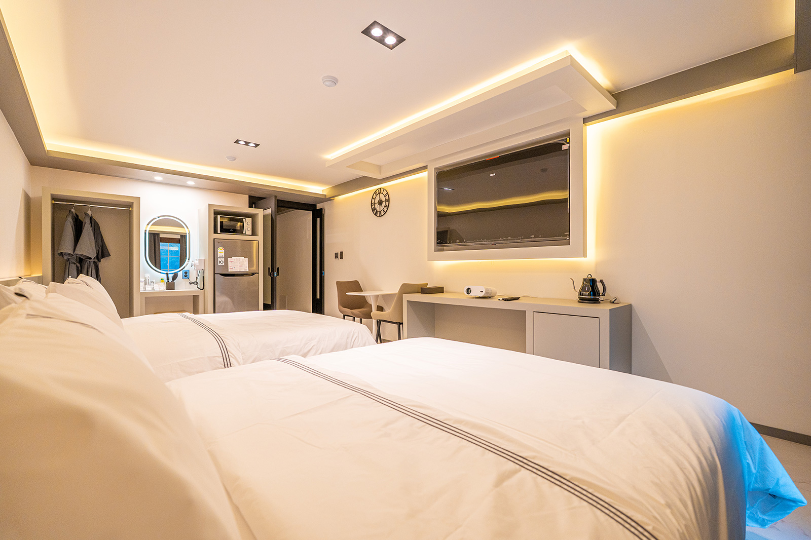 객실집기 : 침대방(1) 1,거실 1,주방 1,화장실 및 욕실 1, 전자레인지, 커피포트
