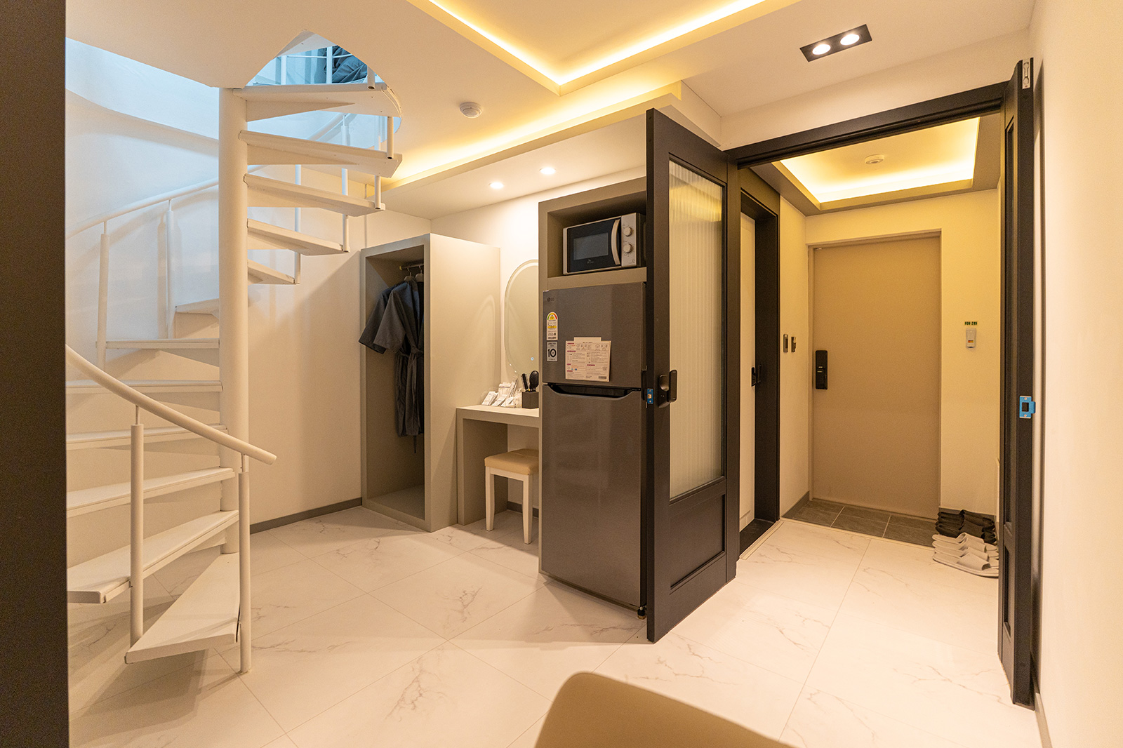 객실집기 : 침대방1, 거실 1,주방 1,화장실 및 욕실 1, 전자레인지, 커피포트